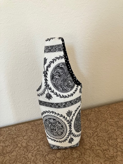 These Wine Bottle Gift Totes make great housewarming gifts, hostess gifts. use as a water bottle carrier, gift bag for olive oil, and many other uses your creative imagination is endless., They are handmade by me, using 100% cotton with fleece inside for some padding. They are machine washable so they can be used again and again. Measures approx. 14 X 12" diameter. Note they will not fit a champagne type bottle.